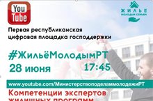 Республики Татарстан в рамках мероприятий Всероссийского Дня молодежи, в целях повышения эффективности информирования молодежи о действующих в Татарстане программах и мерах государственной поддержки молодых семей, молодых специалистов в улучшении жилищных условий 28 июня 2021 года в 17.45 проводится второй прямой эфир #ЖильёМолодымРТ.