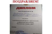 Ученик 7 класса Бикчантаев Данис занял 1 место в республиканской научно- практической конференции школьников “Камаевские чтения – 2019”. Поздравляем руководителя Сиразиева Р.Б. и Даниса с достойной победой! 12.04.2019