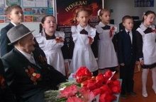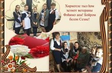 Хәтер вахтасы кысасында укучылар авылыбызда яшәгән сугыш ветераннарын даими рәвештә барлап, кайгыртып торалар. Аларның өйләрендә булалар, бәйрәмнәр белән котлыйлар, очрашуларга чакыралар. Менә чираттагы шундый тәрбия чарасы мәктәптә гөрләп үтте. “Җиңү безгә җиңел бирелмәде!” дип исемләнгән очрашуга җирлегебездә яшәүче бердәнбер Бөек Ватан сугышы ветераны Сибгатуллин Рәшит Гыйниятулла улы килде. Калинин фронтында сугышып, Берлинга барып җиткән каһарманга 93 яшь! Ләкин ул әле бүген дә укучылар өчен ялкынлы патриот, тырыш һәм уңган авылдаш, нык гаилә нигезе. Ул үзенең тормыш юлы турында бик кызык һәм мавыктыргыч итеп сөйләде, барлык сорауларга җавап бирде. Балалар аның һәр сүзен йотлыгып тыңлады, бәйрәм белән котлап аны кочакларынына алдылар, ветераныбызны аллы-гөлле чәчкәләргә күмделәр. 2-4 сыйныф укучылары матур җырларын, 6-7 сыйныф укучылары шигырьләрен бүләк иттеләр. Һәр сыйныф махсус котлау сүзләре җиткерде. Бәйрәм фотога төшү белән аралаштырылып алып барылды һәм чәй өстәле артында төгәлләнде. Җиңүгә багышланган чаралар мәктәптә дәвам итә. ”Үлемсез полк” акциясенә , Хәтер вахтасына”, тантаналы митингка әзерлек алып барыла. 08.05.2016