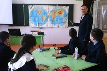 География һәм биология фәннәре атналыгы кысаларында 6 нчы сыйныфта география фәненнән ачык дәрес булып үтте (укытучы Сираҗиев Р.Б.) Дәреснең темасы - "Һава торышы". Дәрес дәвамында укучылар бик күп кызыклы мәгълүмат алдылар. Үзләренең белемнәрен киңәйтү һәм ныгыту өчен 6 сыйныф укучылары күптөрле проблемалы сорауларга җавап таптылар һәм биремнәр башкардылар. 08.04.2016