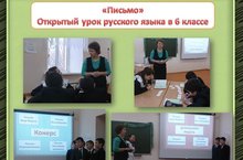 22 декабря 2015 года учитель русского языка и литературы Ахмадуллина Г.Р. провела открытый урок в 6 классе по теме «Письмо». Цель урока - познакомить учащихся с жанром письма как древнейшим средствои общения людей и его основными современными разновидностями. Грамотно использованные на уроке обучающие структуры Конерс и Тик-Тэк-Тоу помогли учащимся усвоить структуру письма и основные правила его написания. 24.12.2015