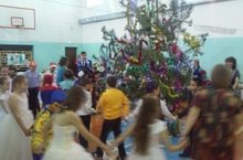 Мәктәптә Яңа ел бәйрәмнәре башлангыч сыйныфлар өчен уздырылган Чыршы бәйрәме белән башланып китте. Бәйрәм чыршы янында уку алдынгыларын, олимпиадада катнашып җиңүгә лаек булган укучыларны, сыйныфларны бизәгән, кардан сыннар ясаган, ярминкәдә уңышлы катнашкан, уенчыклар, костюмнар бәйгеләрендә җиңгән өчен бүләкләүдән башланды.Кыш бабай белән Кар кызы алдында шигырьләр сөйләү, яшел күлмәкле кунак тирәли уйнап – биеп җырлаулар, мавыктыргыч уеннарда катнашуга үрелде. Авылыбызның шәхси эшмәкәрләре ( кибетче абый һәм апалар) биргән күчтәнәчләрне алу белән беррәттән һәрбер укучы да Кадыйров Фәнис абыйларыннан тәм-том белән шыплап тулган пакетлар алды. Беренчегә укырга керергә әзерләнүче дә, өйдә укучы балалар да бүләксез калмады. Кочак-кочак бүләкләргә күмелеп нәниләр рәхәтләнеп бәйрәм итте! 26.12.2015