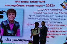 4 нче апрель көнне "Ел укытучысы-2022" конкурсының нәтиҗәләре буенча татар теле һәм әдәбияты укытучысы Шәрәфетдинова Лилия Габделхак кызын район администрациясе котлады. Аңа "Иң яхшы татар теле һәм әдәбияты укытучысы" конкурсының республика этабында номинант булганы өчен рәхмәт хаты тапшырылды. Без коллегабызны чын күңелдән котлыйбыз! Киләчәктә дә зур уңышлар телибез! 04.04.2022