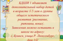 Уважаемые родители! Объявляется дополнительный набор детей 4 -5 лет в группы общего эстетического развития (рисование, ритмика,вокал). 01.11.2023