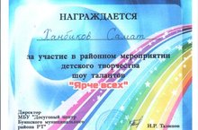 | E-Mail: | dshi1_bua@mail.ru, Udo.Dshi-rdk@tatar.ru |
