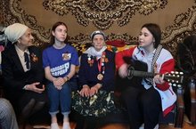 Җиңү волонтерлары, Яшь гвардиячеләр һәм Ветераннар советы рәисе З.И. Хөснетдинова белән берлектә, тыл хезмәтчәннәре Хәмидуллина Ръкия һәм Хәсәнова Камарияне Бөек Ватан сугышында Җиңүнең 78 еллыгы белән котладылар. Балалар җырлар башкардылар һәм бәйрәм белән котладылар. Без ел саен үткәргән бу акциядә актив катнашабыз. Бөек Җиңүгә керткән өлешләре һәм сугыштан соңгы еллардагы хезмәтләре өчен рәхмәтләребезне белдерәбез. Без аларның батырлыгын мәңге кадерләрбез, истә тотарбыз һәм горурланырбыз.