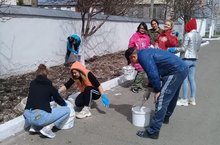 К всероссийскому субботнику присоединились и студенты. На очистку территории и побелку бардюров вышли и студенты Буиснкого медицинского училища.