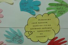 Сегодня мы отмечали Международный День Приветствий. Символом этого праздника является ладошка. Поэтому мы использовали ее в различных интерпретациях: в играх, в оформлении, на занятиях по рисованию и аппликации