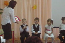 Согласно годовому плану ДОУ,в младшей группе провели открытый просмотр занятия.Само название говорит,что дети побывали в сказке, вместе с Петушком,участвовали в инсценировке сказки "Курочка Ряба".Играли в игры "Карусель","Волшебная ложка".Элементы УМК помогли детям повторить названия домашних птиц,обогатить словарный запас словами "чуар","кукэй",алтын", "гади","тычкан".
