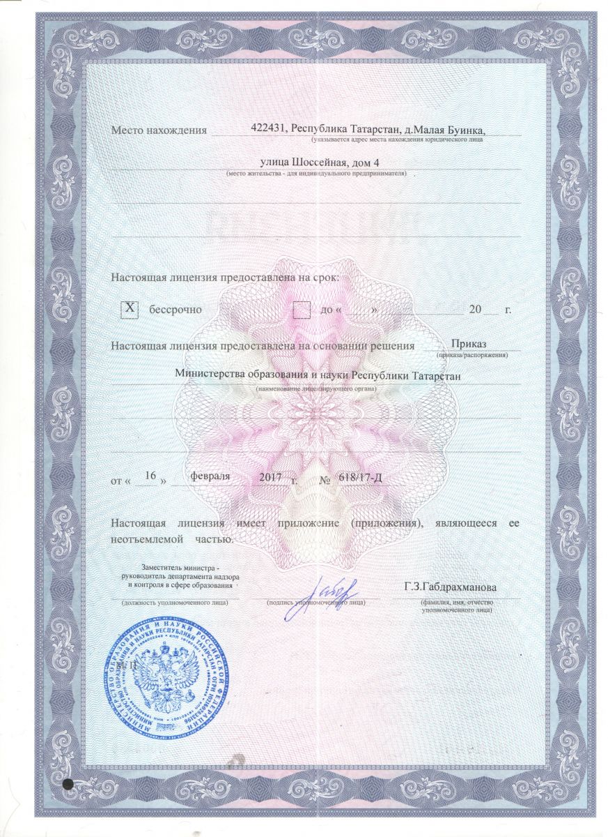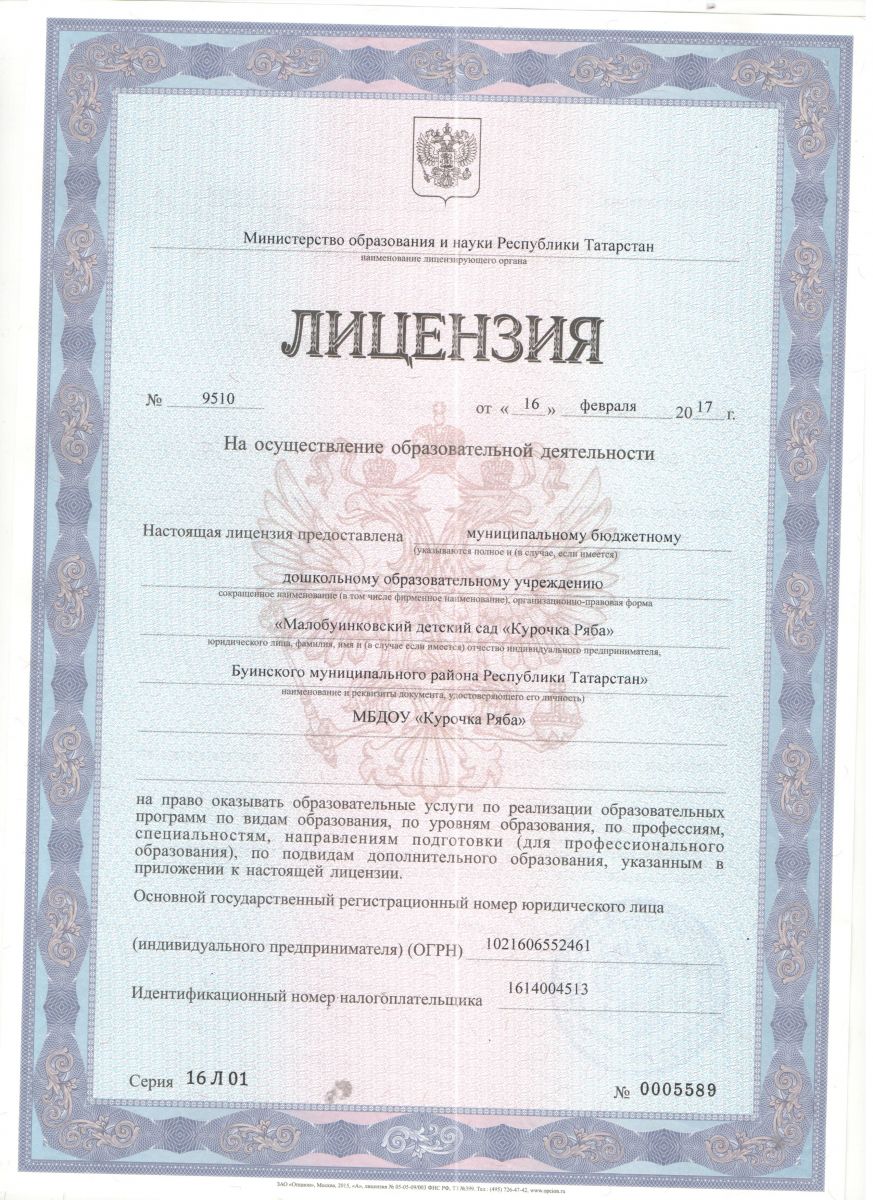 Лицензия на осуществление образовательной деятельности от 16.02.2017 года