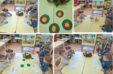 Воспитанники второй группы раннего возраста на занятии по художественно-эстетическому развитию лепили цветок на поляне: сначала скатывали маленькие шарики — будущие лепестки, потом нежно соединяли их в простую яркую композицию.