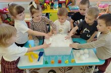Сегодня воспитанники второй младшей группы рассматривали снег и определили его цвет. Затем каждый ребёнок потрогал его ладонью и словесно передал свои ощущения. Таким образом, выяснили, что снег холодный, а ладошка тёплая, поэтому снег тает.Также дети проверили, имеет ли снег запах, и убедились, что он не пахнет. Ещё для эксперимента были подготовлены пластиковые стаканчики, в которые воспитанники набрали снег и стали ждать, пока он растает. В результате экспериментально-опытной деятельности ребята научились понимать, почему происходят многие природные явления. Дети с удовольствием наблюдали за всем происходящим в процессе эксперимента. Такое волшебство вызвало у малышей море положительных эмоций.