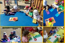В рамках тематической недели "Прощай, лето" воспитанники старшей группы выполнили коллективную композицию из цветной бумаги, вырезая разноцветные ладошки "Наше лето".