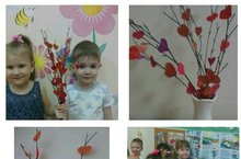 Подарок, изготовленный своими руками, будет особенно милым. Так решили дети младшей группы и подарили своим близким «Веточку любви». Для работы малышам понадобились клей, цветная бумага и веточки. Изготавливая поделку, девочки и мальчики развивали мелкую моторику и аккуратность. И у них все получилось красиво. Как же радовались родители неожиданному подарку! Ведь каждая из них несет тепло маленьких сердец, которым они напитались при изготовлении. ( источник Сафиуллина И.А)