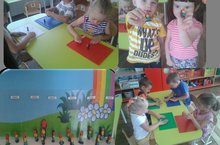 В рамках недели цветов дети старшей группы совместно с воспитателем изготовили коллективную работу «Поляна ромашек» в технике пластилинографии. В ходе данной деятельности воспитанники познакомились со способом пластилиновой растяжки, использовали технику размазывания. Пластилинография – достаточно кропотливый процесс, но в то же время работа с пластилином была для детей очень интересной и увлекательной. Воспитанники ощутили максимум удовольствия от самого процесса и результата работы. Проведенное занятие способствовало формированию творческих способностей и фантазии, воспитанию таких качеств, как аккуратность и усидчивость. Кроме того, коллективная форма организации дает возможность каждому ребенку формировать умения и навыки работать вместе, строить общение, развивает привычку к взаимопомощи. (источник: Ятокина Р.И.)