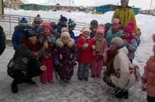 Сегодня воспитателями нашего детского сада был организован праздник для детей «Проводы зимушки – зимы». Зиму провожали, а весну встречали. Скоморохи Акаша и Милаша играли с детьми в русские народные игры, танцевали, водили хороводы.