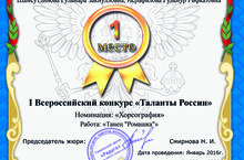 Ансамбль "Улыбка" занял 1 место в Всероссийском конкурсе "Таланты России" в номинации "Хореография" (русский стилизованный танец "Ромашка"). Руководители: Тазетдинова Н.Н., Шамсутдинова Г.З., Исрафилова Г.Р. Молодцы!!!