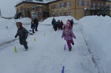 «Попади в цель», «Быстрая езда», «Бег змейкой», «Кто быстрее донесет комочек», "Прыжки". «Снежный ком», «Катание снежных комов», «Снеговики», вспомнили зимние виды спорта.