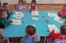 Сегодня во второй группе раннего возраста прошло занятие по рисованию "Осенние листочки". Воспитатель беседовала с детьми о осенней погоде, сильном ветре, деревьях. Ребята помогли дереву "одеться" и нарисовали листочки красками в нетрадиционной технике рисования. В процессе рисования малыши повторили основные цвета.Все ребята молодцы!