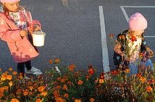 С большим интересом воспитанники старшей группы вместе с воспитателем и младшим воспитателем во время прогулки собирали семена бархатцев,чтобы посеять их на следующий год.
