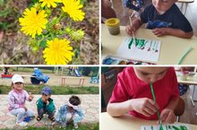 В средней группе "Светлячки" сегодняшний день посвящён полевым цветам. На прогулке ребята наблюдали за дикорастущими цветами, а потом запечатлели свои наблюдения на бумаге. С помощью нетрадиционной техники рисования "кляксографии" у детей выросла целая поляна полевых цветов.
