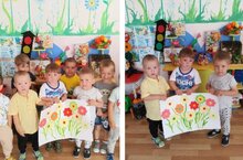 Сегодня воспитанники младшей группы познакомились с разновидностями цветов, растущих на территории детского сада, закрепили их названия, рассматривали сходства и отличия, читали стихи, беседовали о бережном отношении к цветам. А затем вместе с воспитателем сделали коллективную аппликацию "Цветущий луг". Цветы - это не только красота, но и часть живой природы, которую надо беречь и охранять.