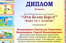 Воспитанник подготовительной к школе группы детского сада "Светофорик" Владимиров Святослав принял участие в республиканском конкурсе "Әти белән бергә" - "Вместе с папой" в номинации "Мастер на все руки" и занял 3 место! Поздравляем!