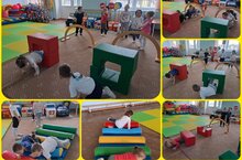 Воспитанники средней группы на физкультуре с легкостью преодолевают препятствия в разных двигательных действиях. -