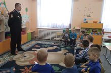 В предверии Дня защитника Отечества в детском саду "Милэшкэй" стартовал марафон "Папина школа". Отважный папа нашей воспитанницы Рахмановой Веры- Рахманов Сергей Борисович рассказал детям о мужественной профессии полицейского.