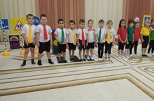 Воспитанники старших групп " Рябинушка" и " Смешарики" участвовали на мероприятии " Знатоки ПДД".