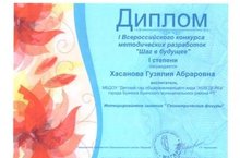 Педагоги ДОУ принимают активное участие во всероссийских профессиональных конкурсах. Воспитатель Хасанова Г.А., специалисты Сафина Л.А., Зиатдинова Л.А., Анисимова Л.Н.представили занятие "Геометрические фигуры" на первый всероссийский конкурс методических разработок "Шаг в будущее" (Образовательный цент "Магариф") и получили Диплом 1 степени. Поздравляем победителей!