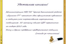 Приглашаем всех на 55-летний юбилей Центра внешкольной работы! 15.12.2014