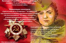 Принимайте участие в конкурсе «У войны не женское лицо», посвященный 75-летию Победы в Великой Отечественной войне. 12.04.2020
