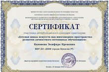 Преподаватели ДШИ приняли участие в Республиканском обучающем мастер-классе "Цвети мой Татарстан", посвященный году народного искусства и нематериального культурного наследия народов. Мастер-классы прошли в дистанционном режиме на платформе Webinar.ru.