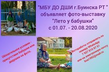 МБУ ДО "ДШИ г.Буинска РТ" объявляет фото-выставку "Лето у бабушки" с 01.07.2020 по 20.08.2020.