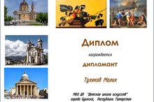 Туляков Малик, учащийся художественного отделения ДШИ принял участие и стал Дипломантом во Всероссийской детской олимпиаде по истории изобразительного искусства "От Бернини до Фальконе".