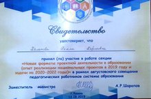 Преподаватель ДШИ Халитова Р.Х. приняла участие в работе секции "Новые форматы проектной деятельности в образовании (опыт реализации национальных проектов в 2019 году и задачи на 2020-2022 годы)" в рамках Республиканского августовского совещания педагогических работников системы образования.