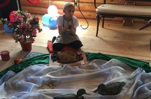 Вокальный ансамбль "Энҗе бөртекләре" - руководитель Махмутова Р.Р., встретили гостей с песней "Тынычлык җыры", из лучших декоративно-прикладных работ учащихся художественного отделения была подготовлена выстовочная композиция.