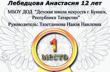 Лебедцова Анастасия - ученица Тазетдиновой Н.Н. приняла участие и заняла 1 место во II Всероссийском конкурсе "Таланты России". В номинации "Музыкальный конкурс" она играла "Вариации на русскую народную песню".