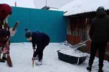 Обучающиеся 9 класса помогли своей подшефной в уборке снега.