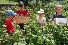 Сегодня воспитанники пришкольного лагеря заготовляли листья черной смородины для витаминного чая.