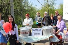После митинга в честь 9 мая,все участники митинга имели возможность отведать кашу из реконструированной полевой кухни.
