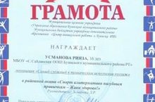 “Урман уттан курка” районкүләм рәсем бәйгесендә 7-9 нчы сыйныфлар арасында 9 нчы сыйныф укучысы Сабирҗанова Гөлназ 2 нче урын алды. Җитәкчесе:Усманова Л.Р. 16.03.2015
