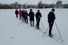 Очередной урок физкультуры по лыжной подготовке...Беренчеләрдән стартка 9-11 сыйныфлар басты, ә калган сыйныф укучылары, чаңгыда тагын да тизрәк чабу өчен, төрле күнегүләр ясый, көч туплый