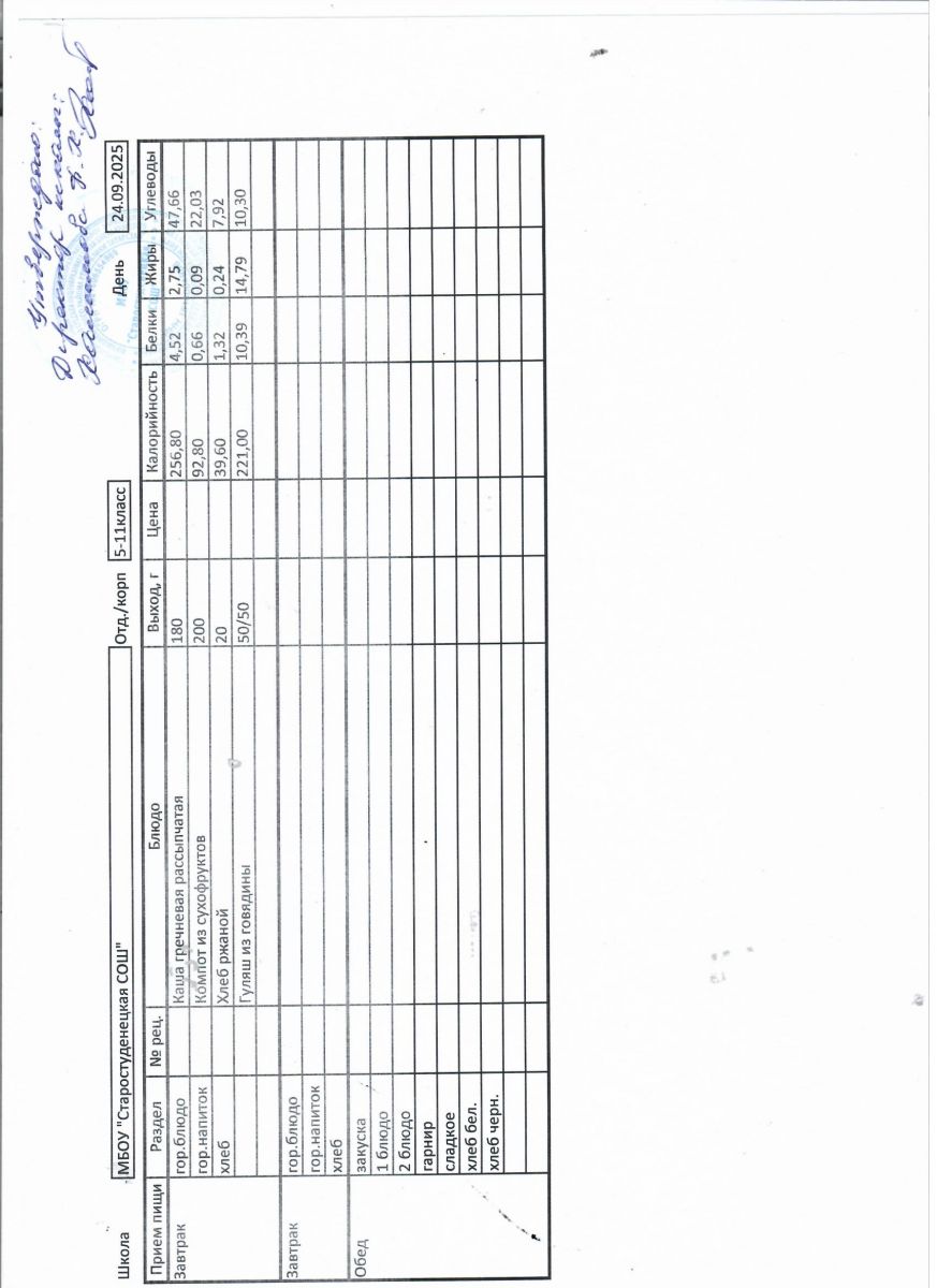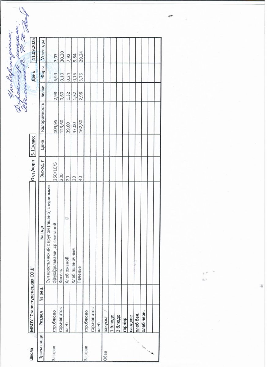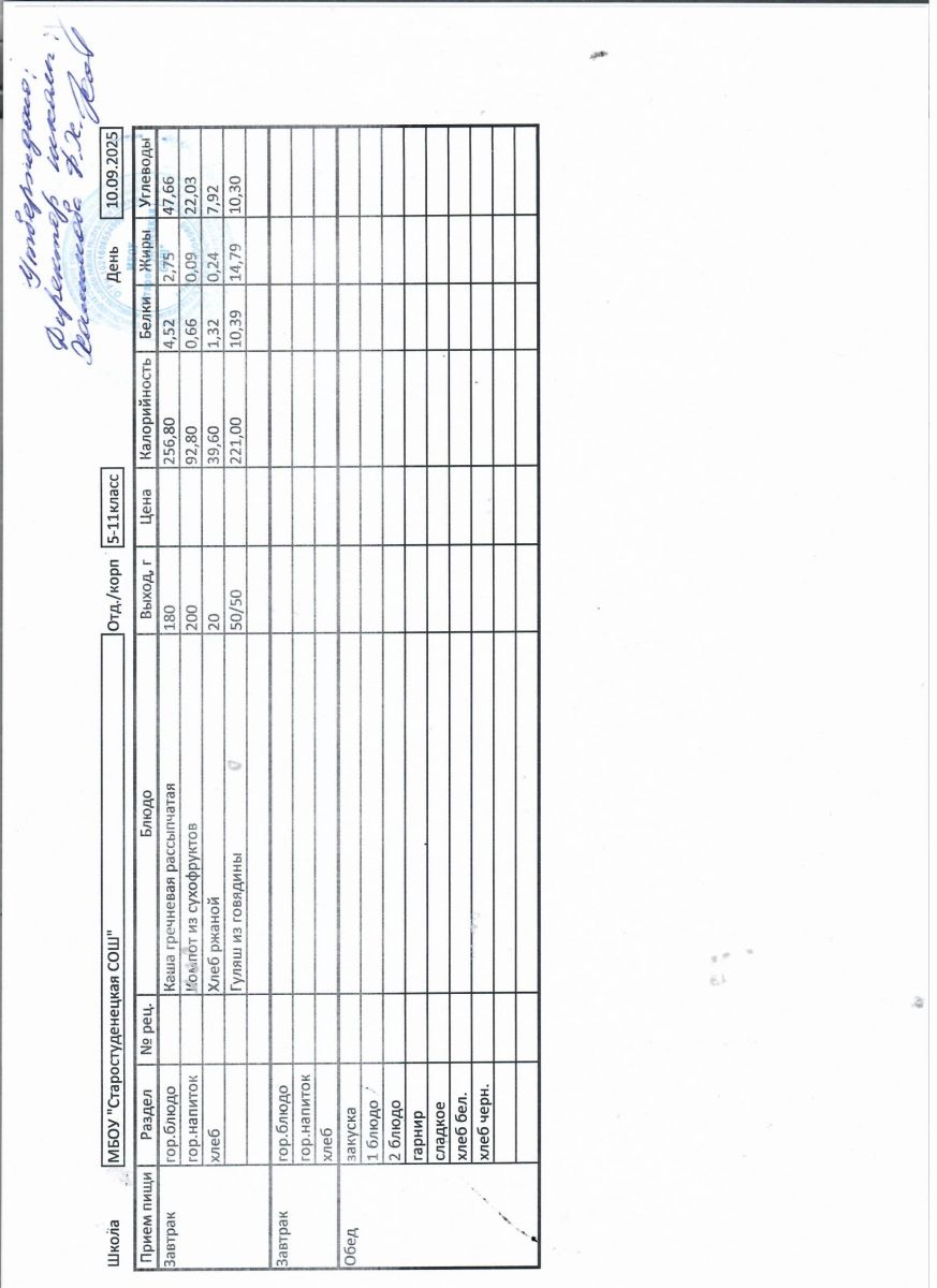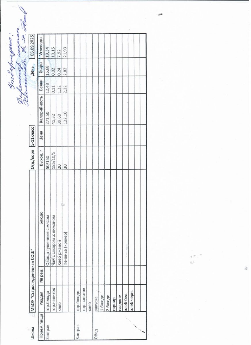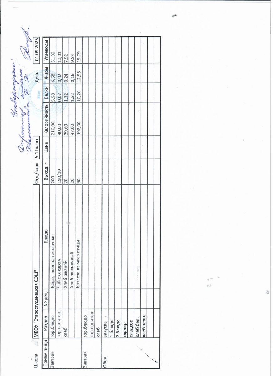 Ежедневное меню на 2025-2026 учебный год (5-11класс)