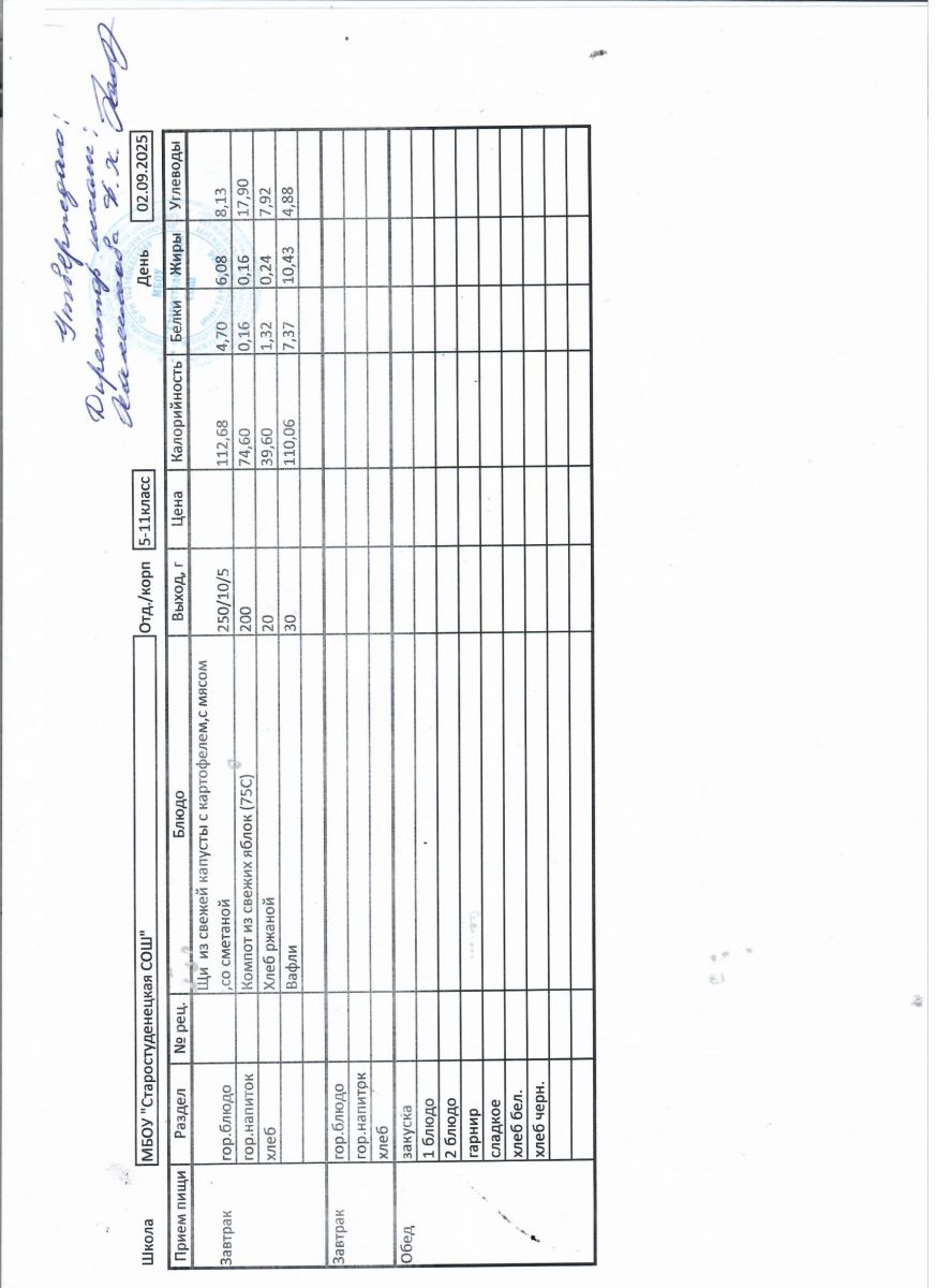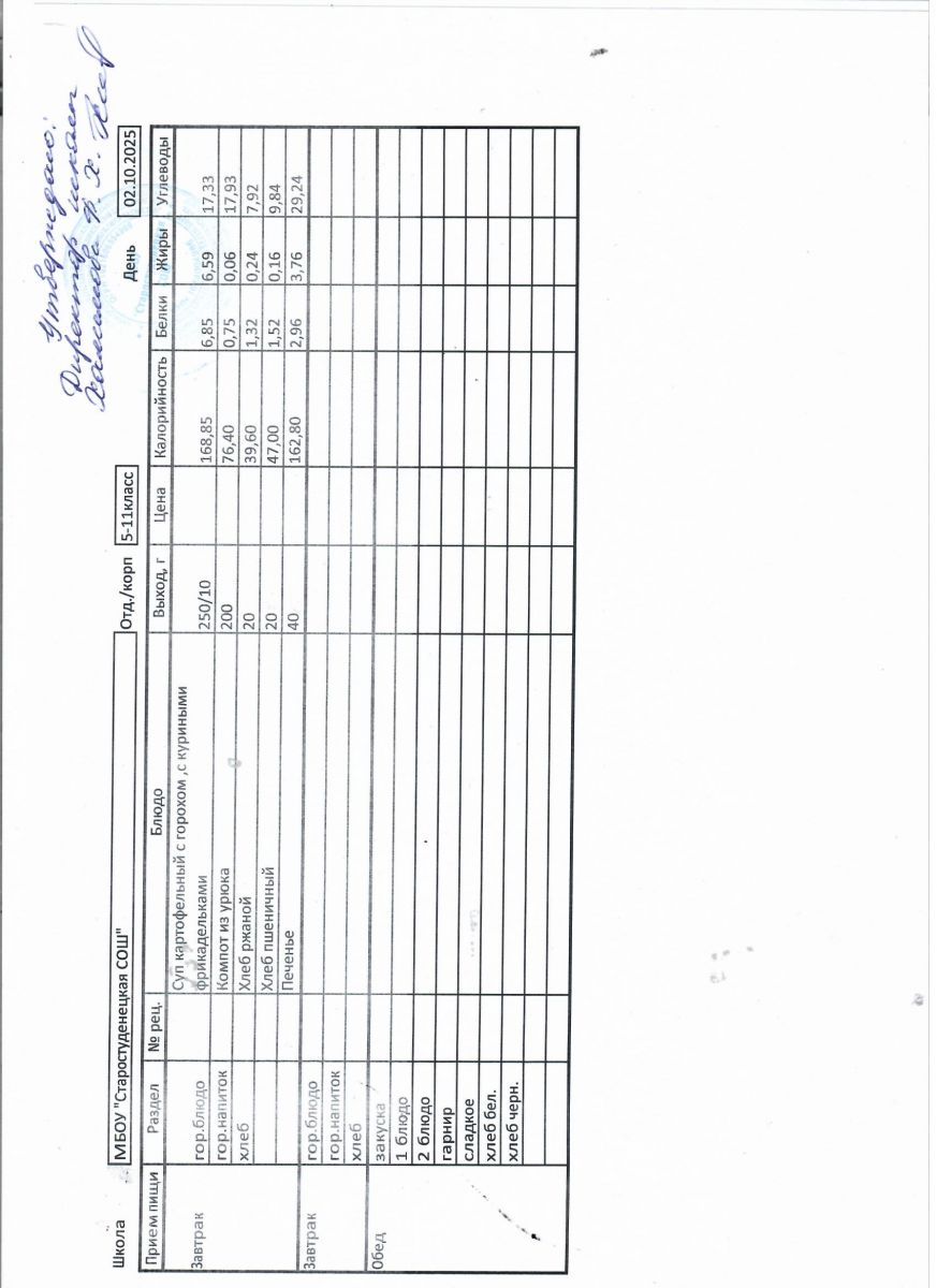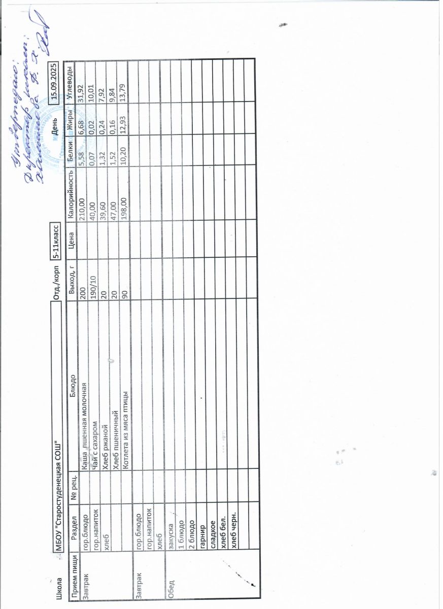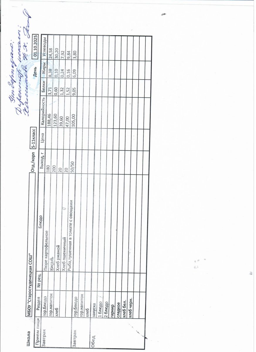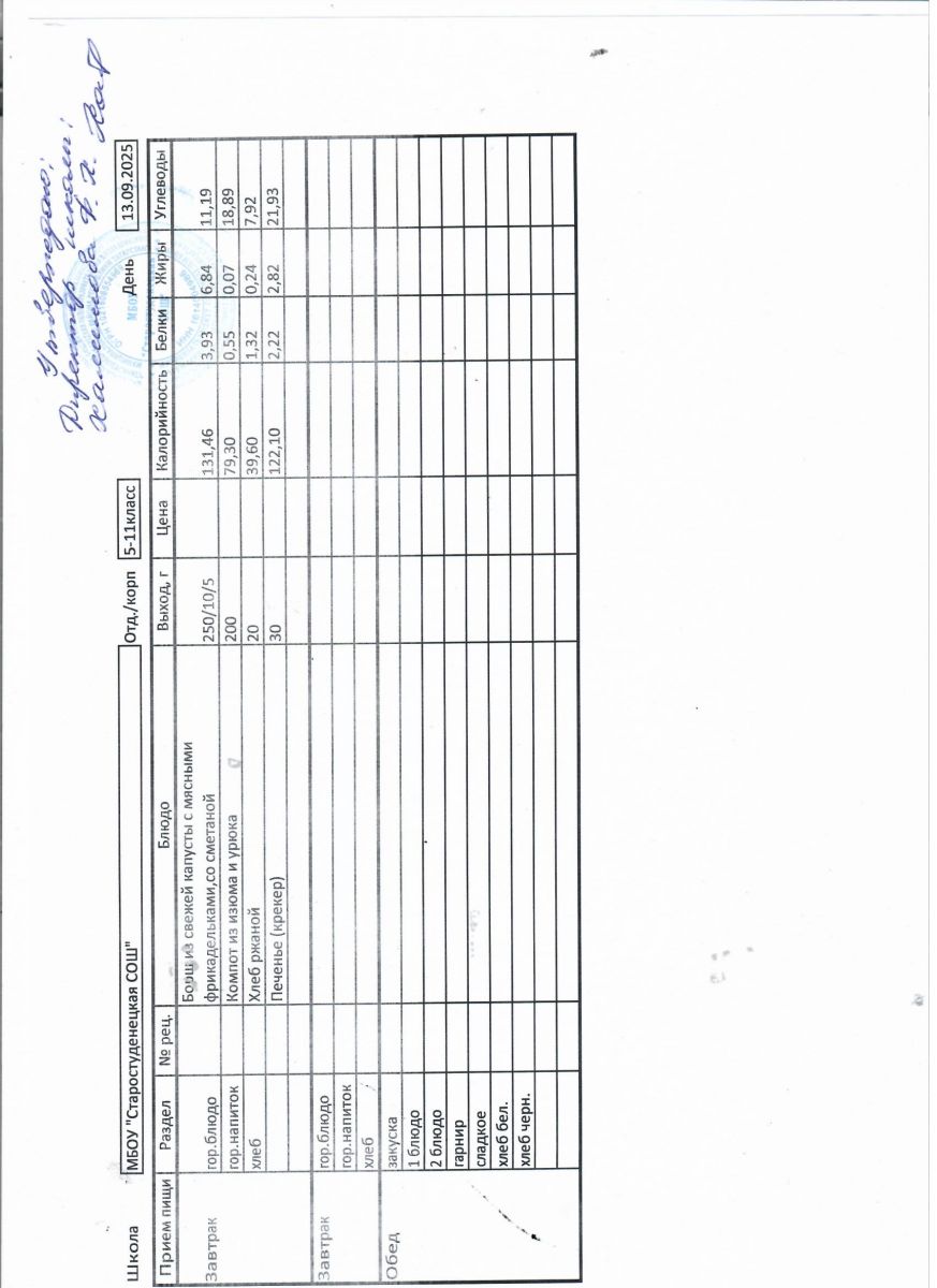 Ежедневное меню на 2025-2026 учебный год (5-11класс)