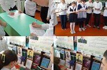 Соңыннан китапханәдә төзелгән китап күргәзмәсе белән таныштылар. -