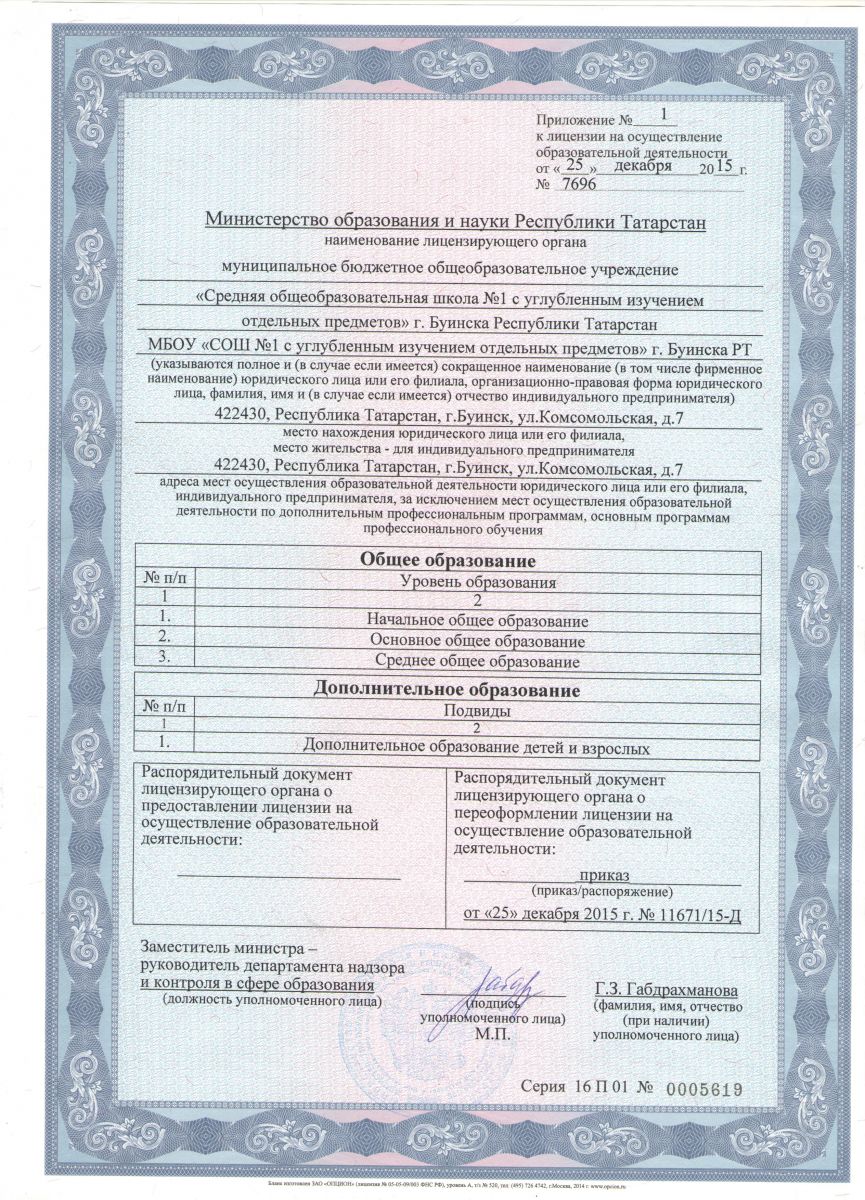 Муниципальное бюджетное общеобразовательное учреждение "Средняя общеобразовательная школа №1 c углубленным изучением отдельных предметов" г. Буинска Республики Татарстан