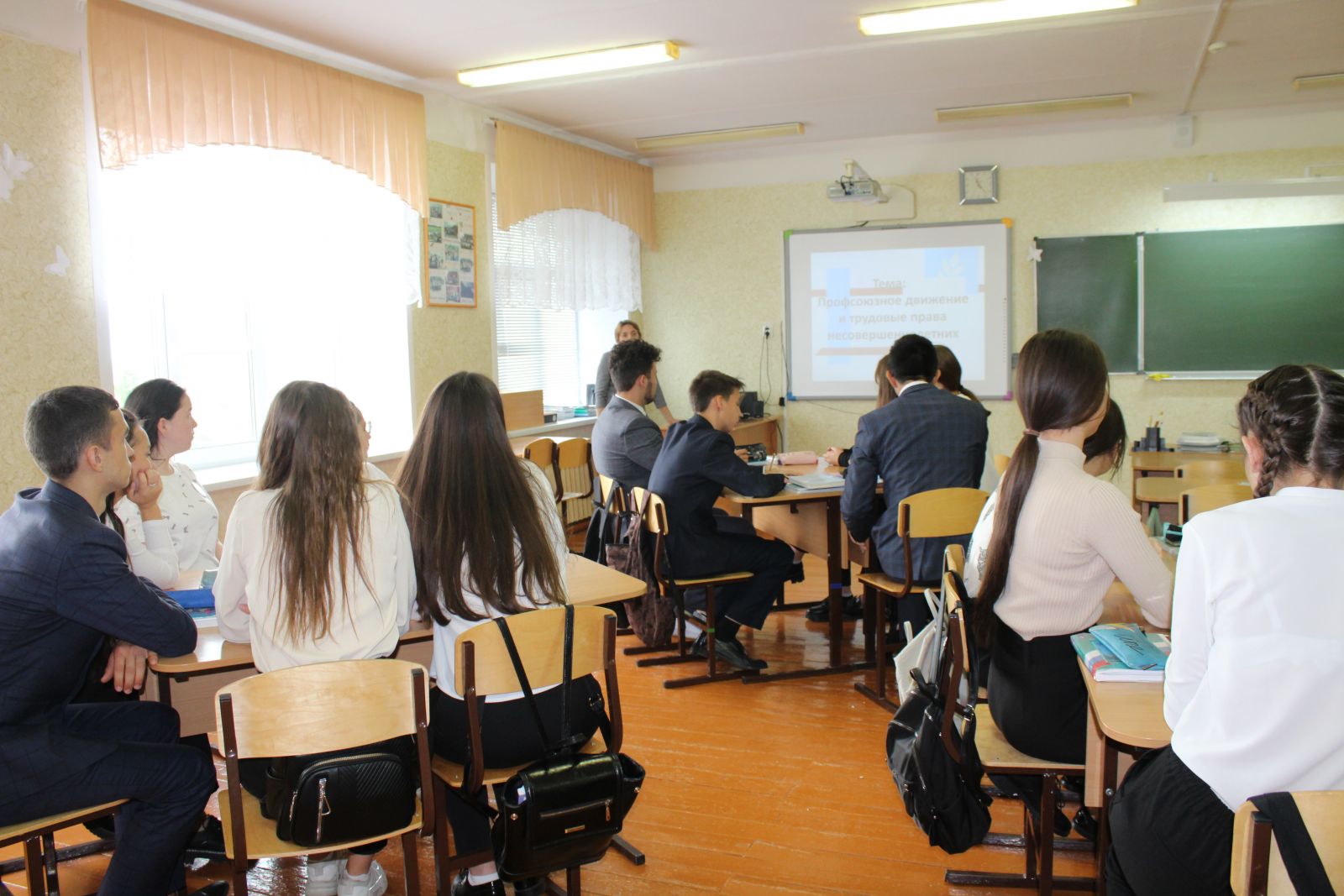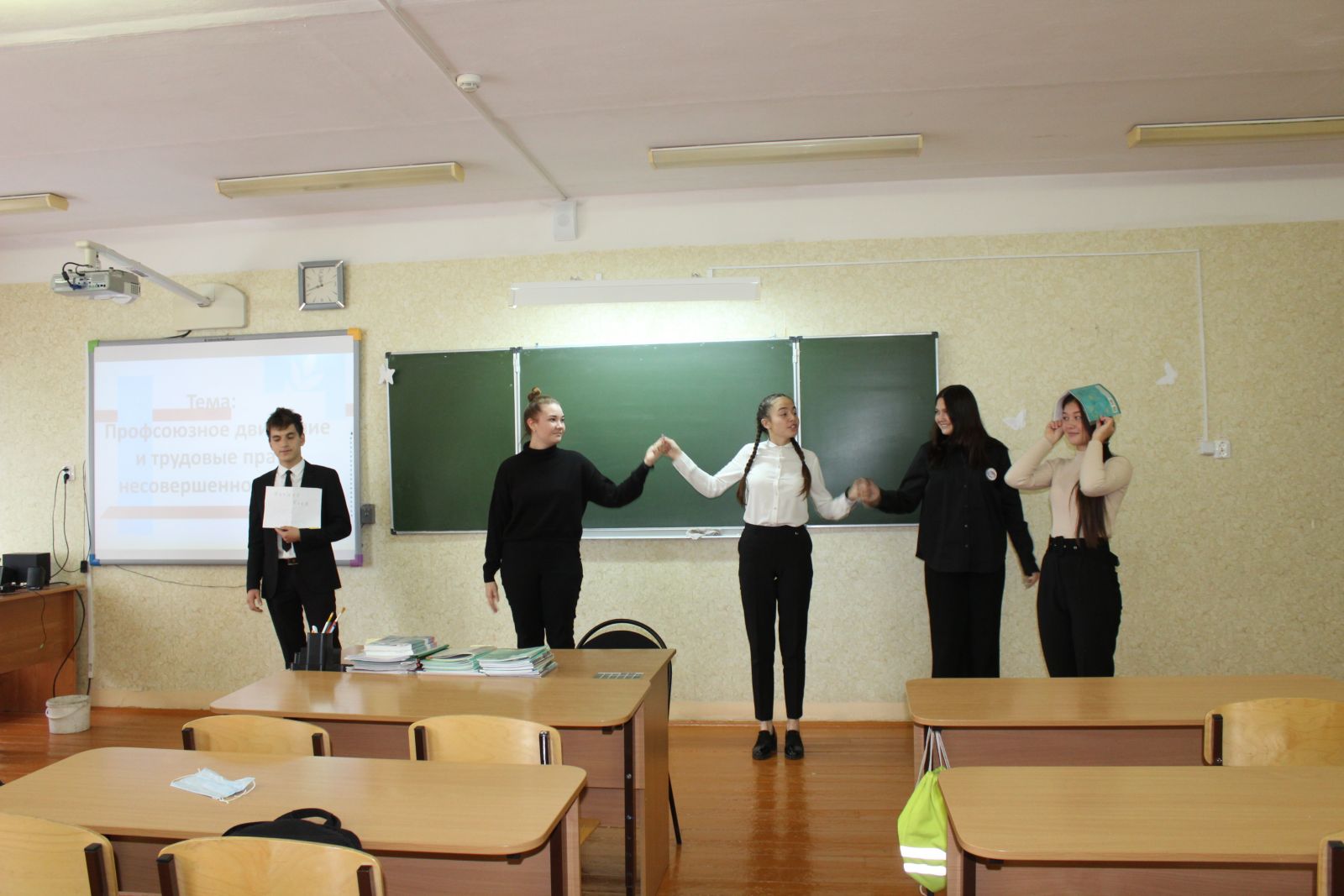 В рамках профсоюзной недели в 11 классе прошёл урок на тему "Профсоюзное движение и трудовые права несовершеннолетних".