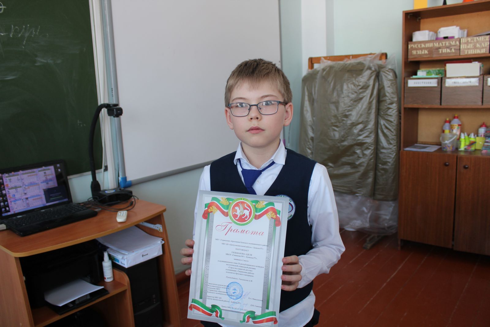 Ученик 5б класса Хисамутдинов Ислам в номинации " Конферанс" - 1место,